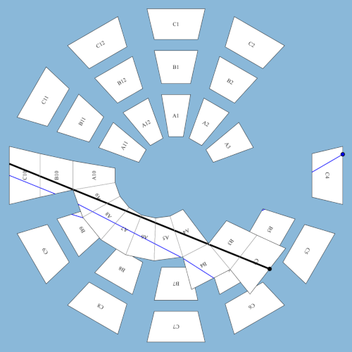 Wenn du die Sektoren entlang einer Geodäte zusammensetzt wird deutlich, dass die Geodäte stets geradlinig verläuft: