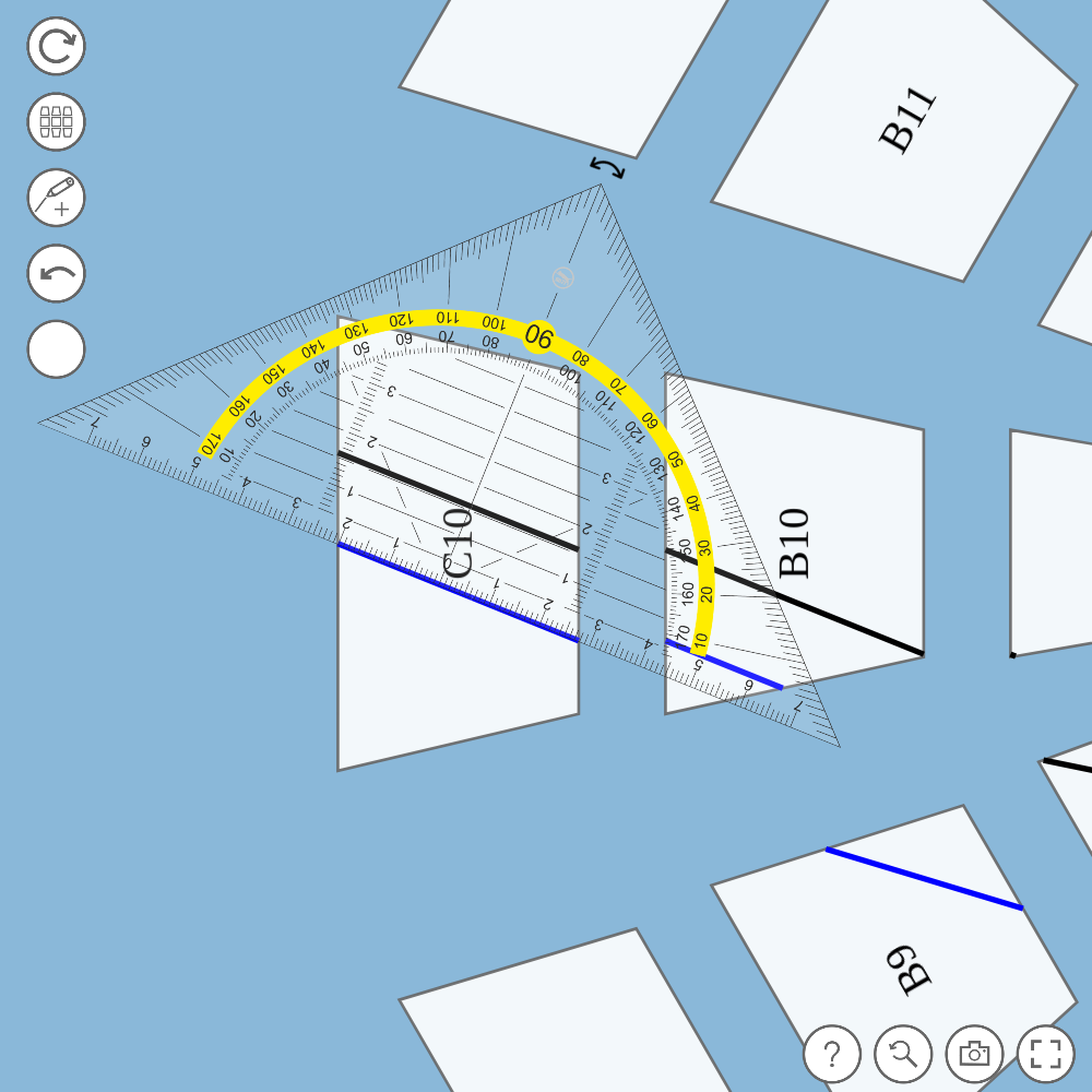Wie du richtig erkannt hast, wird mit dem Geodreieck deutlich, dass die beiden parallel startenden Geodäten nach dem Schwarzen Loch in unterschiedliche Richtungen verlaufen: