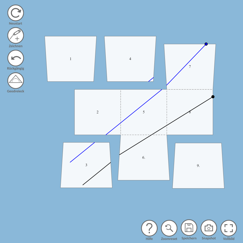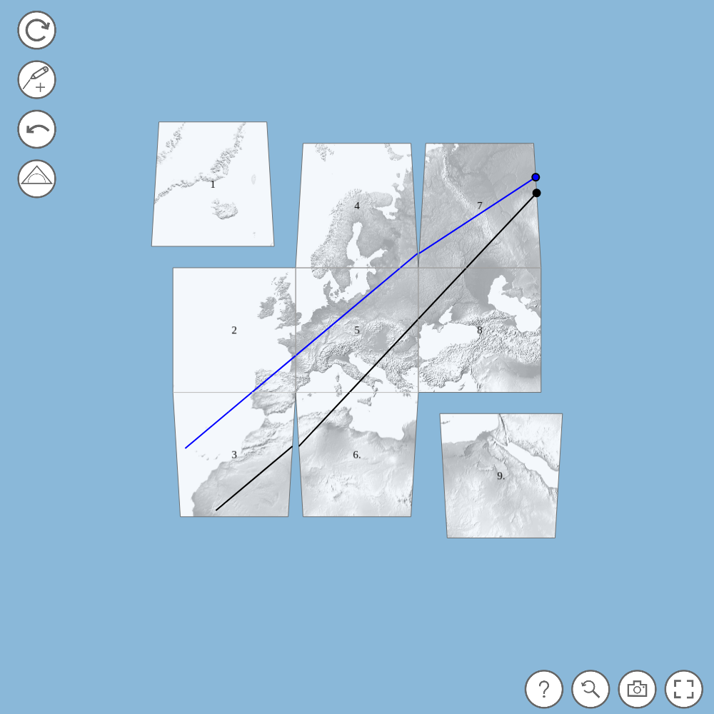 Diese Antwort ist nach richtiger Konstruktion leider falsch. Du solltest dir die Konstruktion deiner Geodäten noch einmal genauer anschauen. Vergiss nicht, dass die Geodäten an jedem Punkt ihre Richtung beibehalten. Ist eine deiner Geodäten vielleicht abgeknickt?